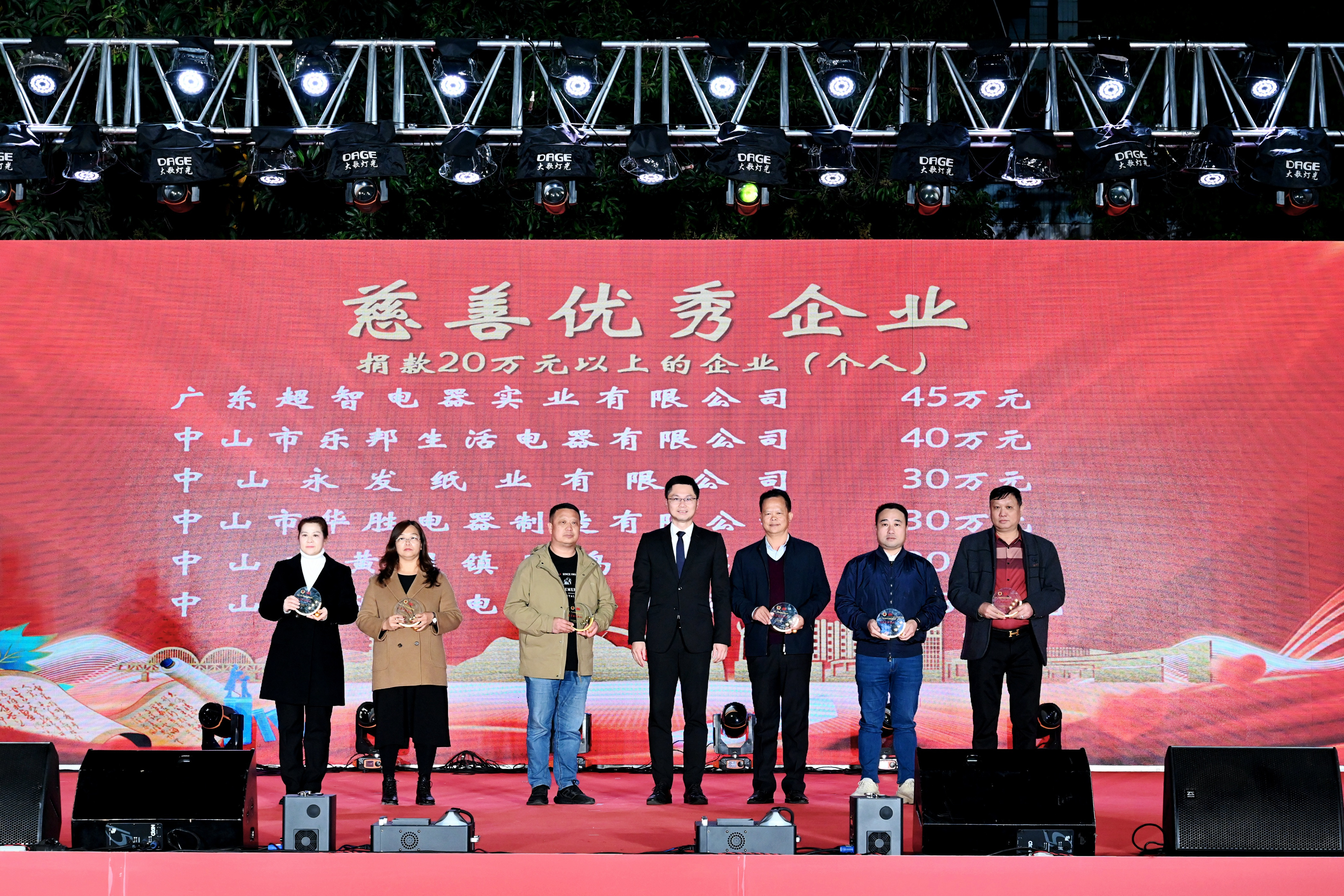 近日,黃圃鎮(zhèn)中心廣場張燈結(jié)彩,喜氣洋洋,一場別開生面的活動在這里舉行--賀元宵金色大地音樂會暨慈善萬人行答謝晚會。在這個充滿喜悅和感激的夜晚,甜美公司榮獲兩項(xiàng)殊榮:《慈善優(yōu)秀企業(yè)》紀(jì)念杯和《“造月計(jì)劃”骨干企業(yè)》紀(jì)念牌匾。